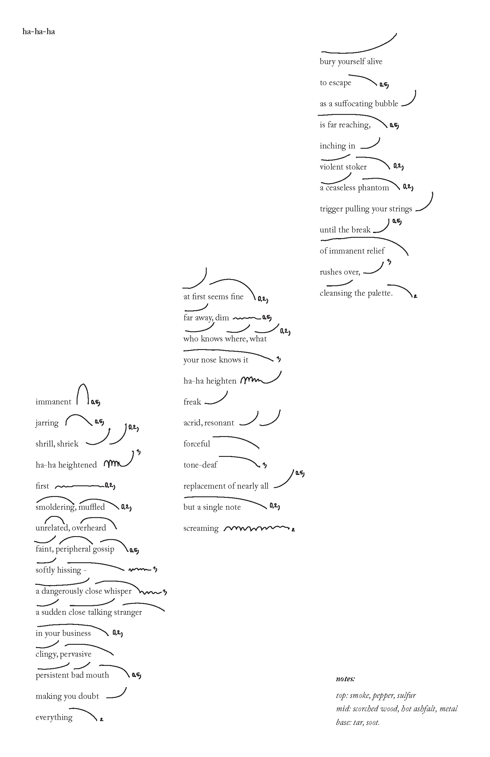 an exhibition and live performance in collaboration with Helen Pridmore (SK) and Joshua Beaudry (SK) on the affects of extended olfactory and sonic vocabulary on environmental perception.