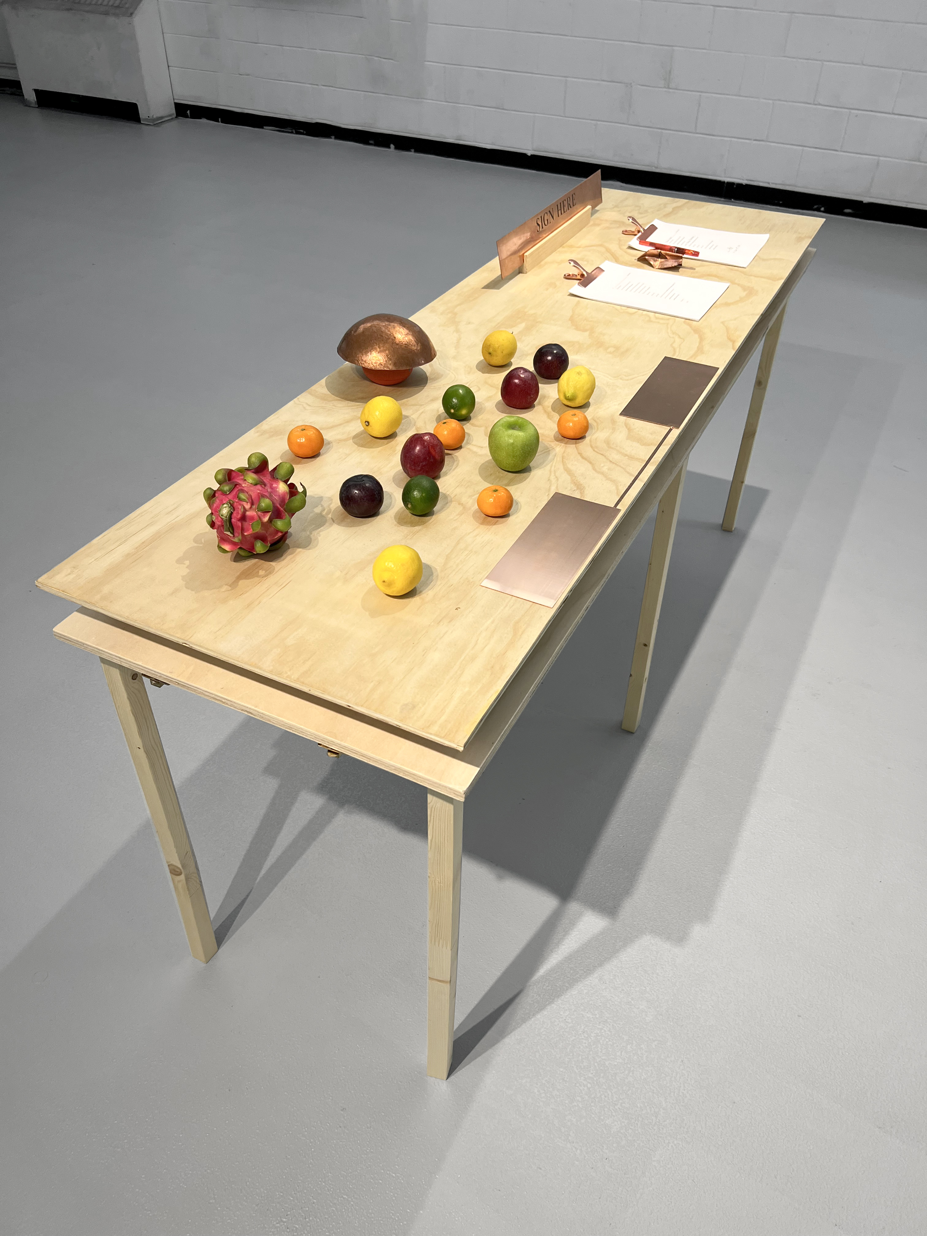 multimedia installation; single-channel digital video, audio, copper, wood, electronic sensors